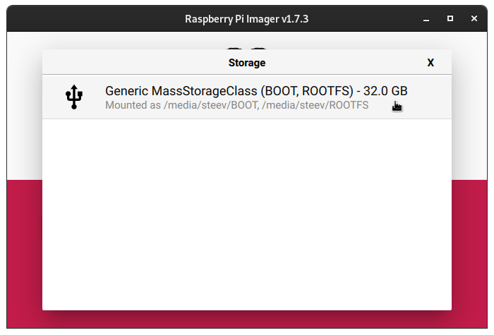 칼리 라즈베리 파이 이미지를 마이크로SD 카드나 USB 장치에 쓰는 또 다른 방법은 윈도우, macOS, 리눅스에서 사용 가능한 라즈베리 파이 이미저 소프트웨어를 활용하는 것입니다.