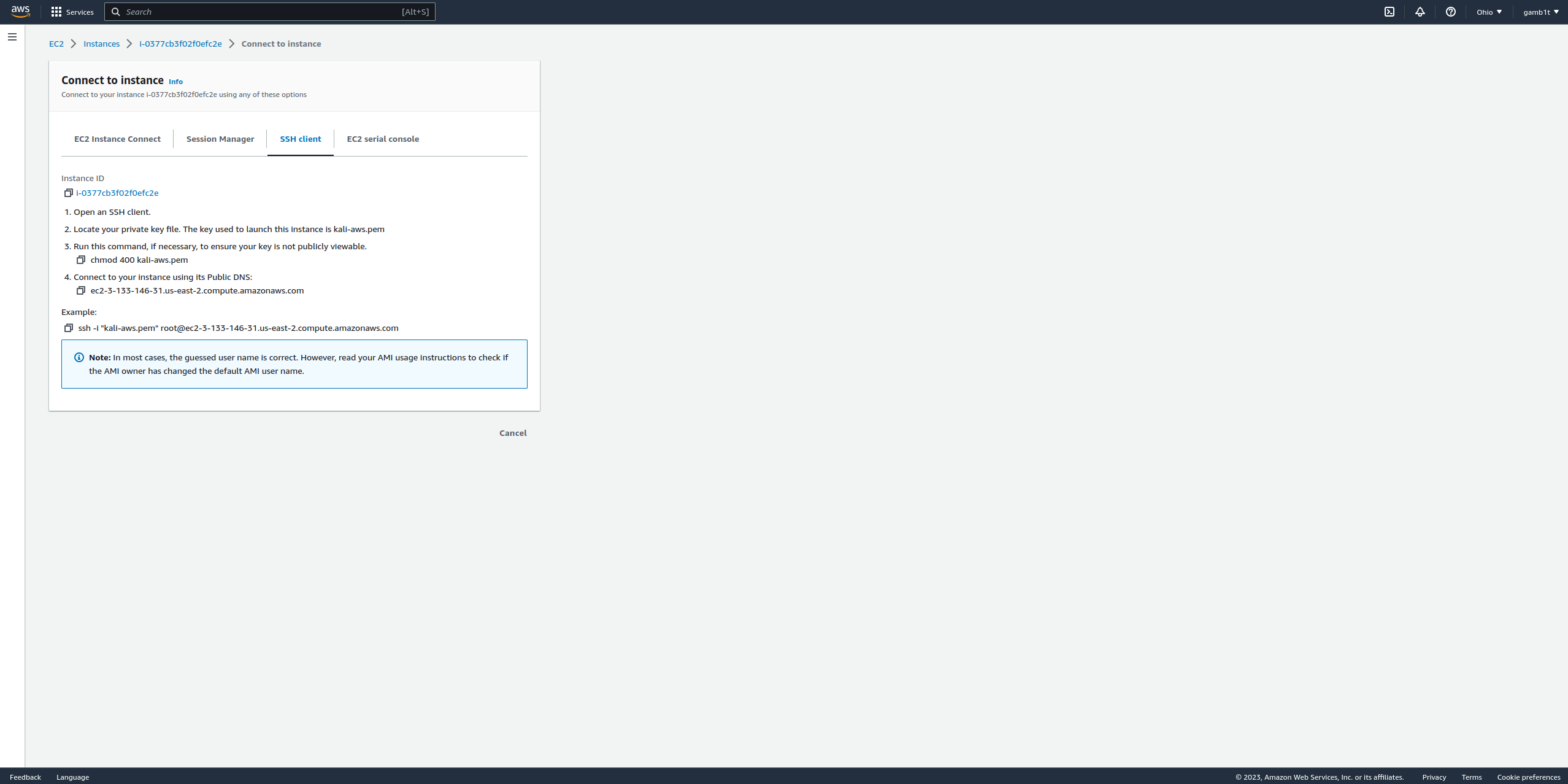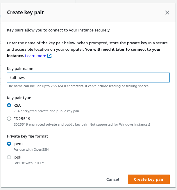 kali@kali:~$ ssh -i "keys.pem" kali@ip