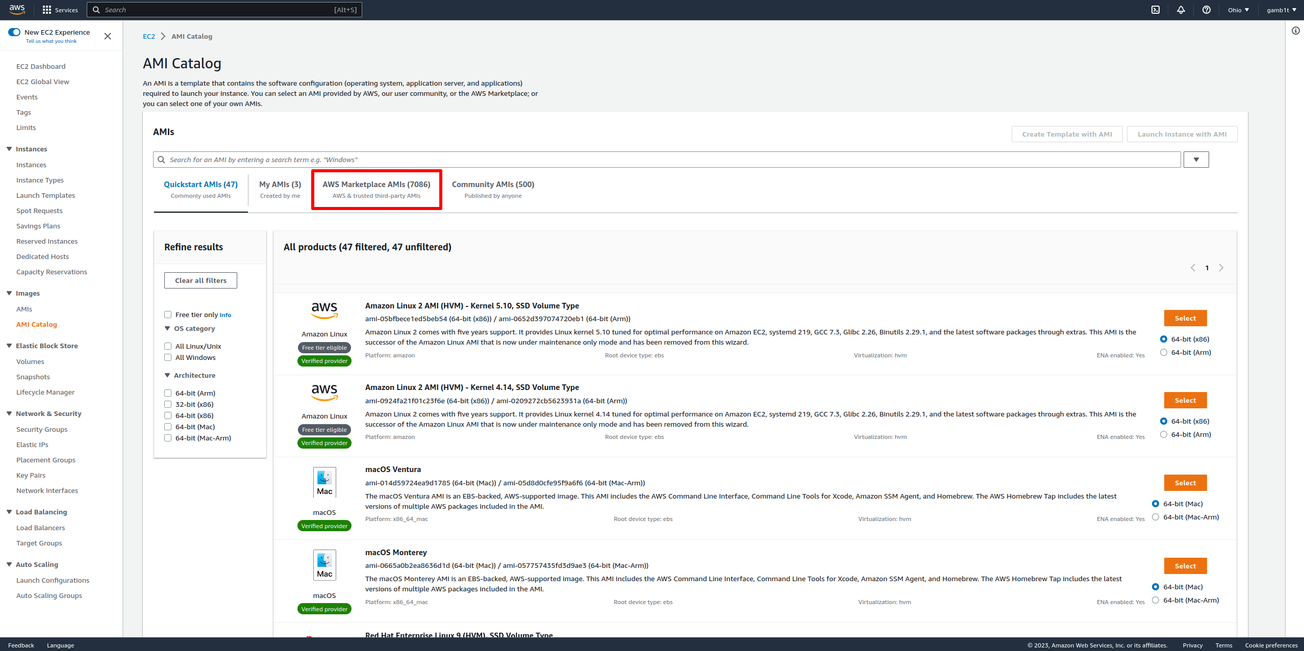 여기서 "AWS Marketplace AMIs"를 클릭해주세요: