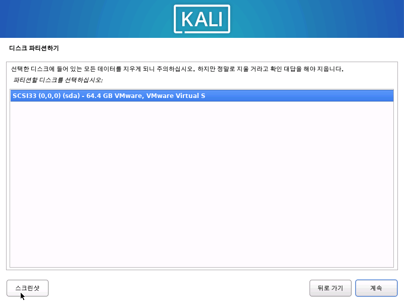칼리 리눅스를 컴퓨터에 설치하는 것(단일 부팅)은 쉬운 과정이에요. 이 가이드에서는 파티션 암호화 옵션을 포함한 기본 설치(물리적 하드웨어 또는 게스트 VM에서 가능)를 다룰 거예요. 경우에 따라 전체 디스크 암호화(FDE)를 사용하여 암호화하고 싶은 민감한 데이터가 있을 수 있어요. 설정 과정에서 하드 디스크 또는 USB 드라이브에 LVM 암호화 설치를 시작할 수 있어요.