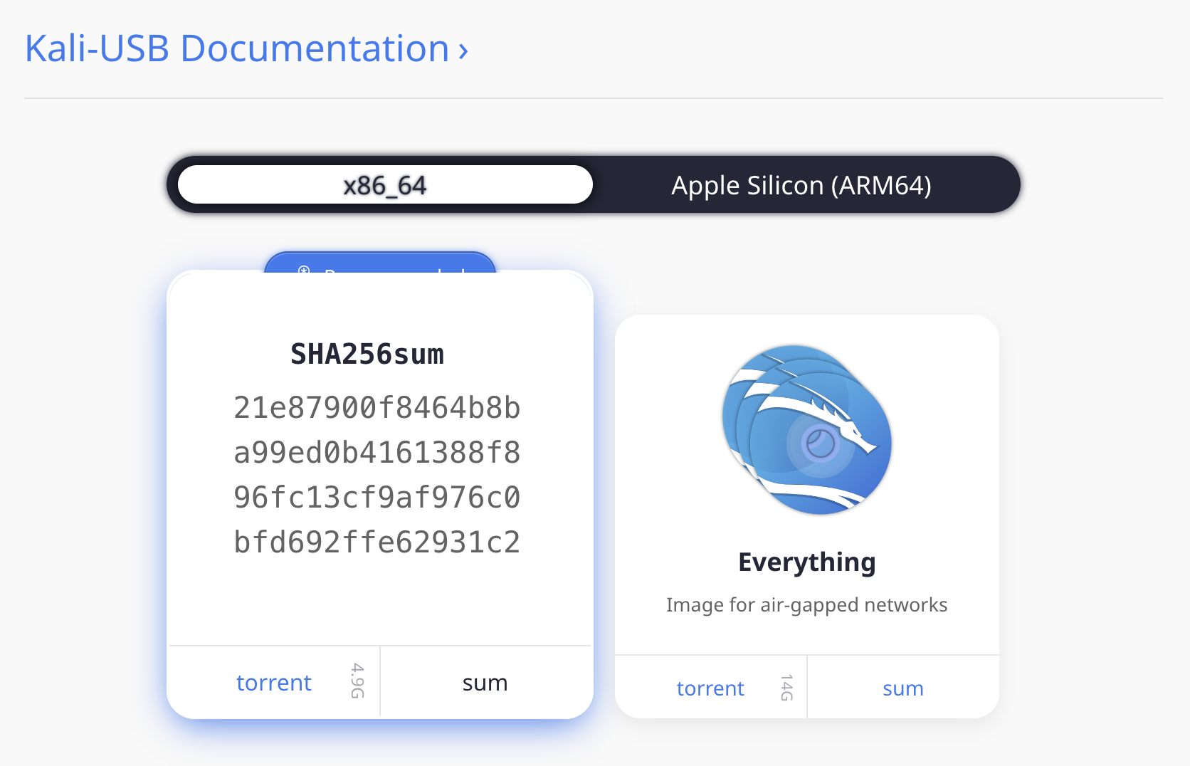 칼리 리눅스 이미지는 직접 다운로드 가능한 ".iso/.img" 파일 또는 ".torrent" 파일로 제공됩니다.