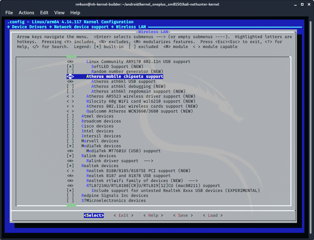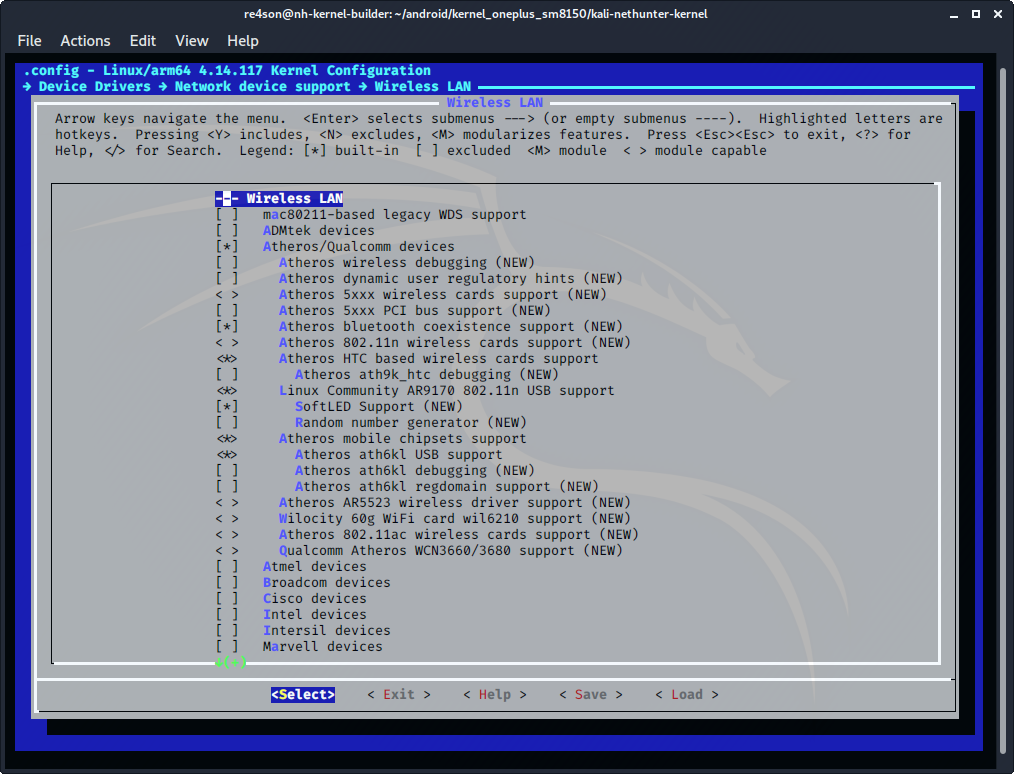 - "Atheros/Qualcomm devices" 선택 (CONFIG_WLAN_VENDOR_ATH=y)
