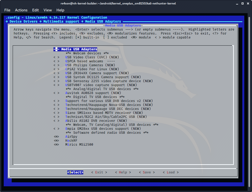 - "HackRF" 선택 (CONFIG_USB_HACKRF=y)