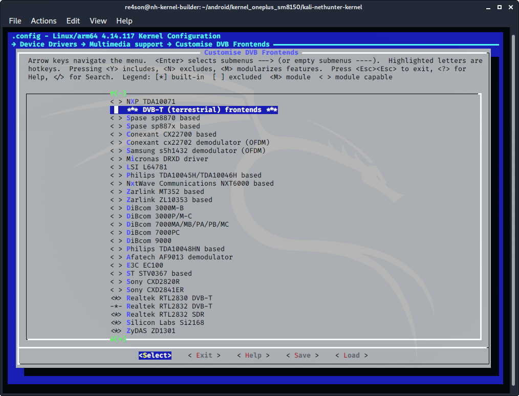 - "Realtek RTL2830 DVB-T" 선택 (CONFIG_DVB_RTL2830=y)