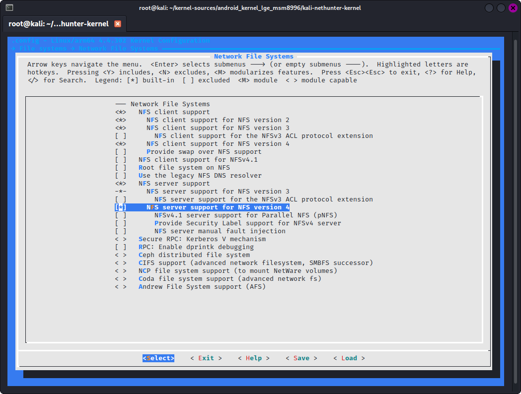 - "NFS server support for NFS version 4" 선택 (CONFIG_NFSD_V4=y)