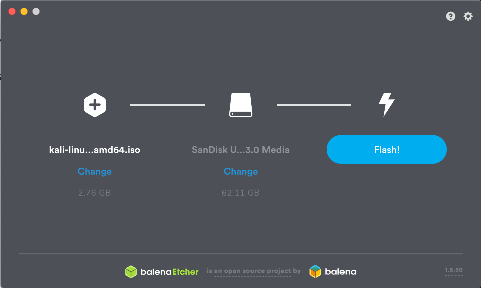 macOS/OS X에서 부팅 가능한 칼리 USB 드라이브 만들기 (Etcher)