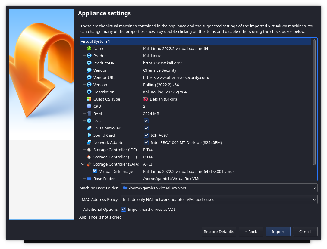 이 페이지는 오래되었습니다. 최신 버전은 여기에서 찾을 수 있어요: 미리 만들어진 칼리 VirtualBox VM 가져오기.
