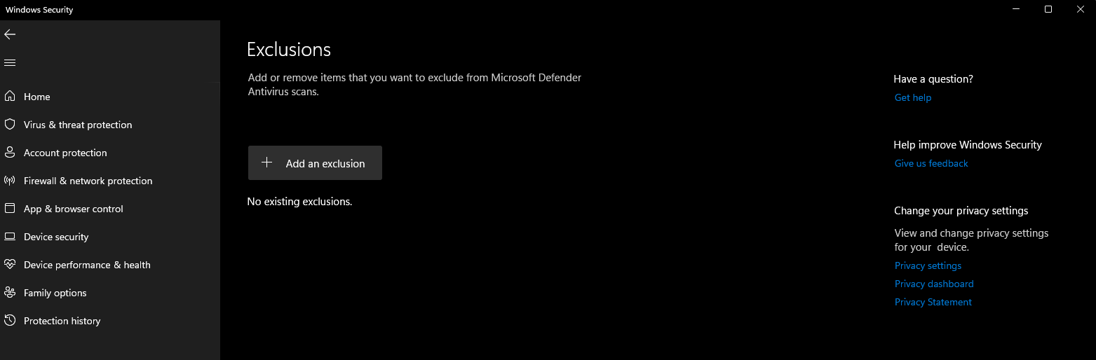 이제 폴더가 예외로 설정되었으므로 Windows 보안은 칼리 리눅스 가상 머신이 포함된 폴더를 스캔하지 않을 거예요.