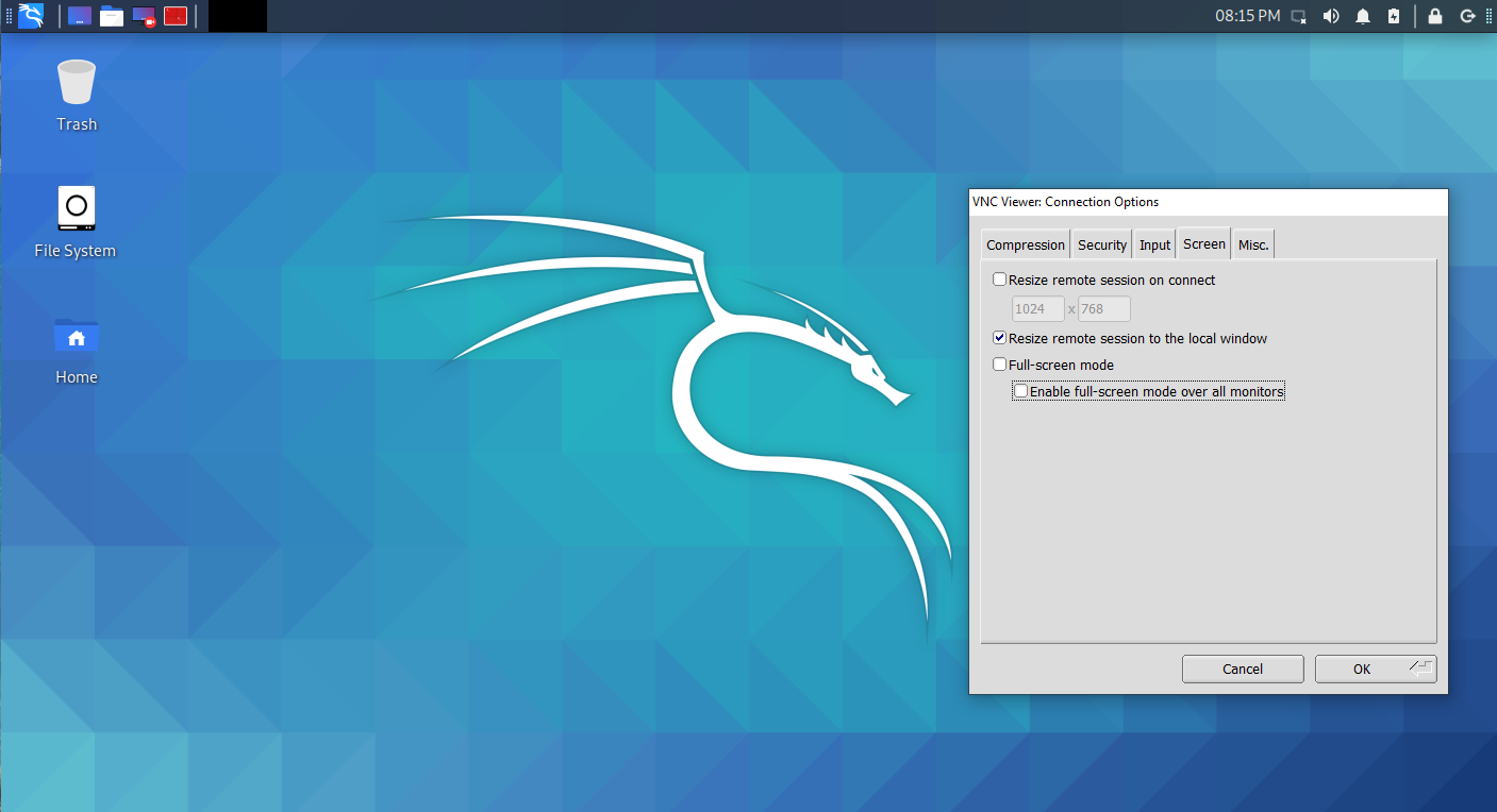 참고: Win-KeX 클라이언트는 루트 세션에 연결할 때 항상 VNC 서버 비밀번호를 요구해요.