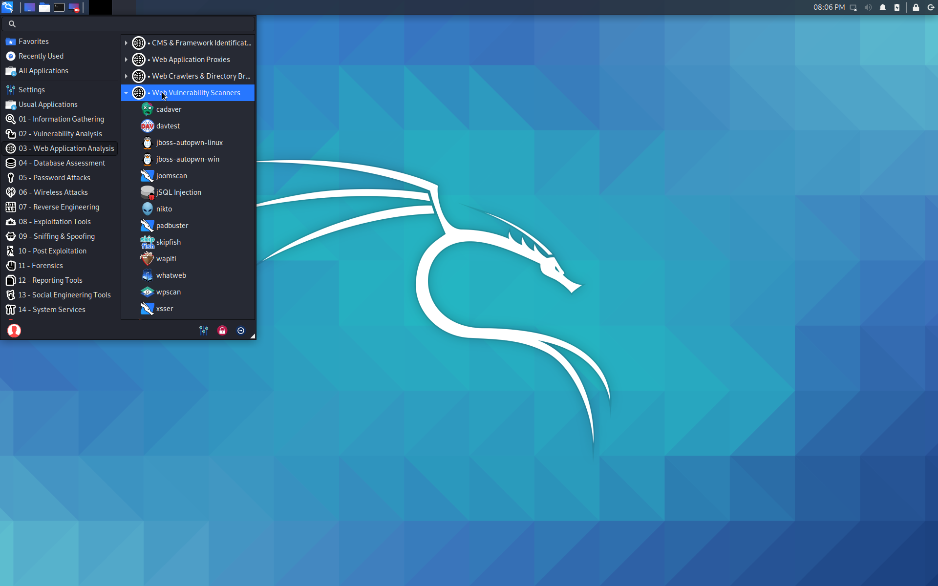 공간이 충분하다면 "모든 기능이 포함된 칼리"를 설치하는 건 어떨까요? 이렇게 하면 기대했던 칼리의 전통적인 "기본" 도구들도 함께 제공됩니다: